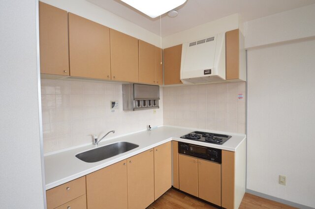 北越高校の通りにあるマンションです。お風呂は追い焚き機能付きでトイレは温水洗浄便座♪シャワー付き洗面化粧台やバルコニー、L字型システムキッチンも付いています!