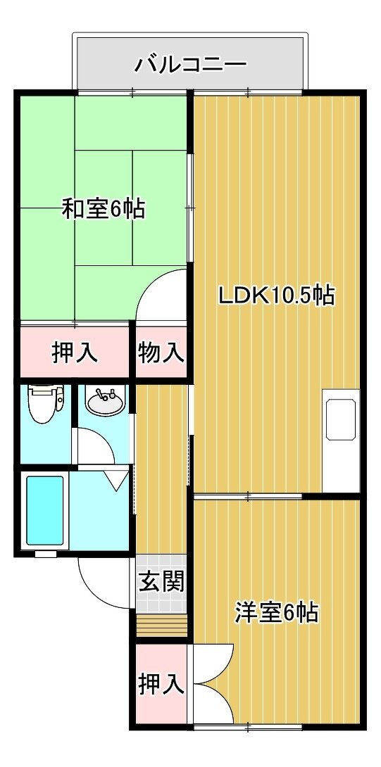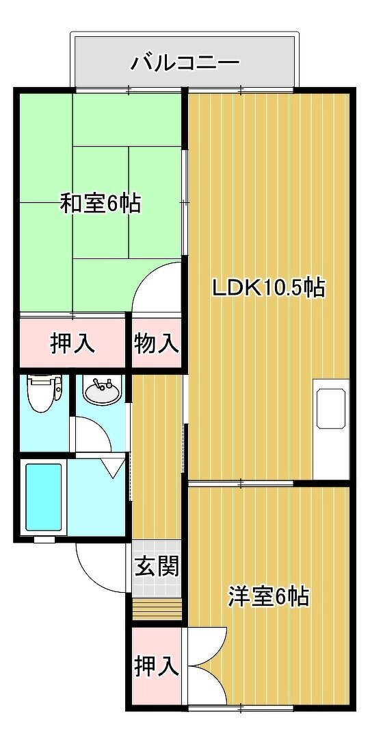 | 間取り | 2LDK (洋6、和6、LDK10.5) | |||