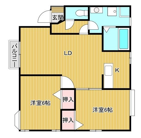 | 間取り | 2LDK (洋6、洋6、LDK12) | |||