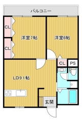 | 間取り | 2LDK (洋7、洋6、LDK9.7) | |||
