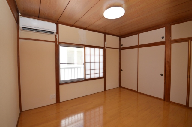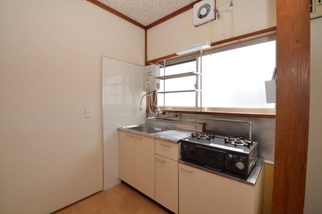 | 設備 | 平坦地 , 最上階 , 駐車場あり , 駐車場1台無料 , 平面駐車場 , 敷金1ヶ月 , 礼金なし , IT重説対応物件 , 都市ガス , ガスコンロ対応 , 2口コンロ , キッチンに窓 , バストイレ別 , ガス給湯器 , 浴室に窓 , 温水洗浄便座 , 室内洗濯機置き , 室内物干し機 , 洋室 , フローリング , エアコン , 全室照明付 , 押入 | ||