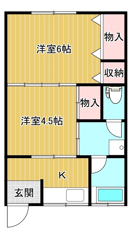 | 間取り | 2K (洋6、洋4.5、K) | |||