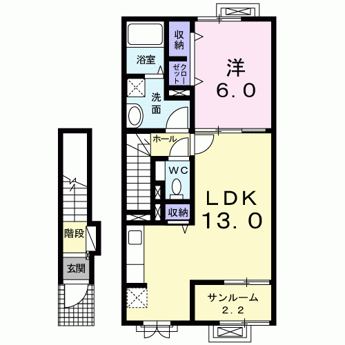 間取り | 1LDK (洋6・LDK13・サンルーム2.2) | |||
