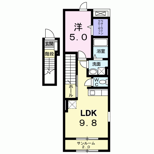 間取り | 1LDK (洋5・LDK9.8・サンルーム2) | |||