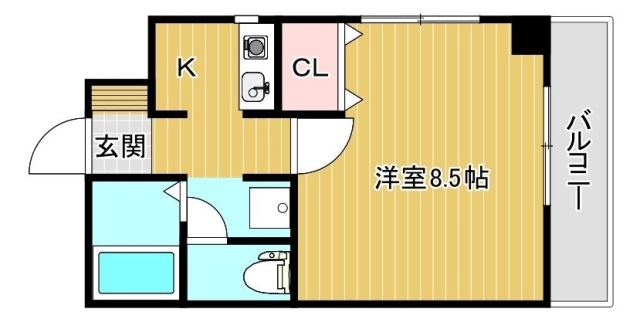 | 間取り | 1K (洋8.5、K) | |||