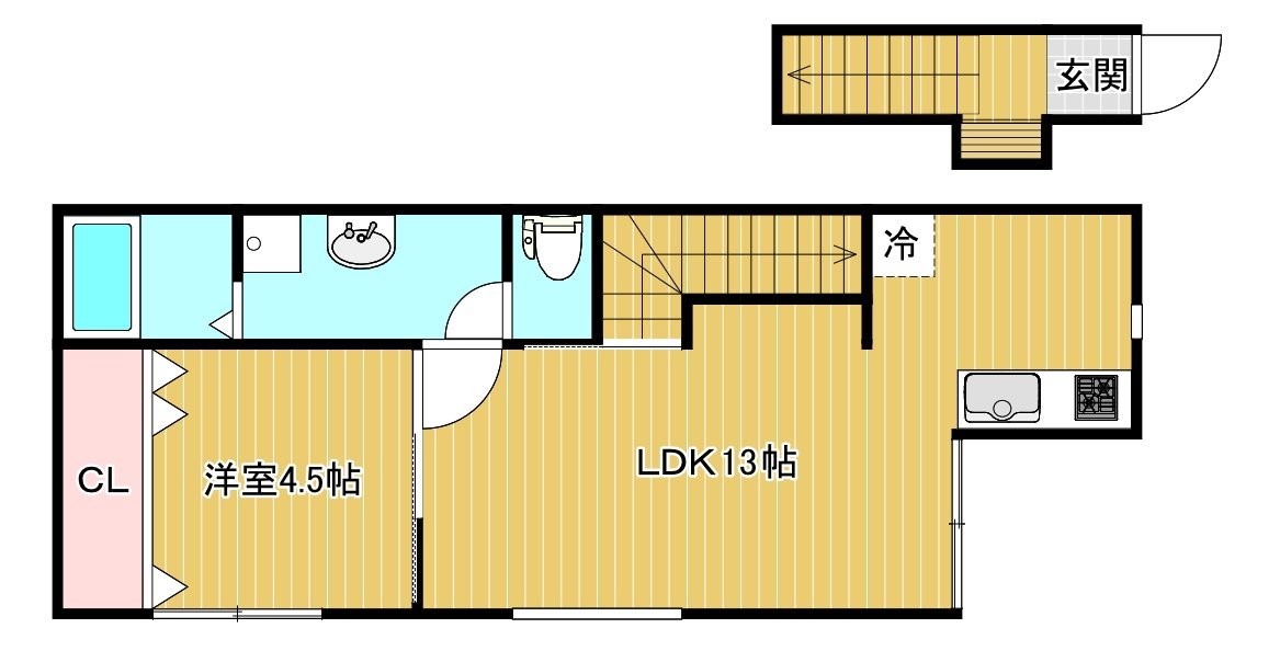 | 間取り | 1LDK (洋4.5、LDK13) | |||