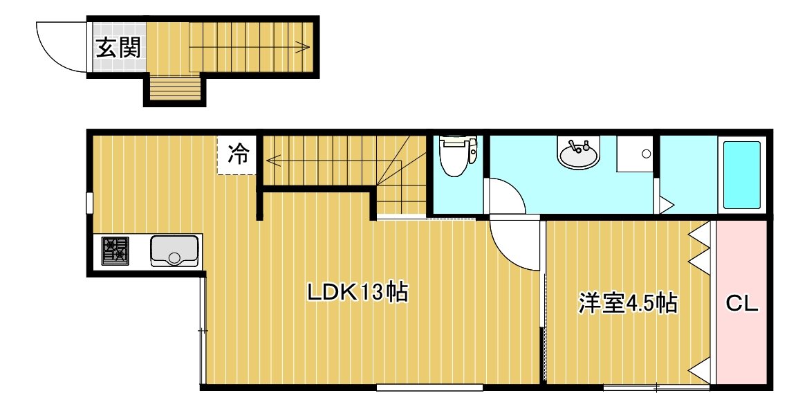 | 間取り | 1LDK (洋4.5、LDK13) | |||