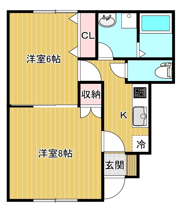 | 間取り | 2K (洋8、洋6、K) | |||