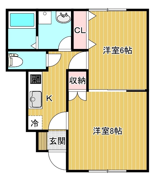 | 間取り | 2K (洋8、洋6、K) | 総戸数 | 6 戸 |