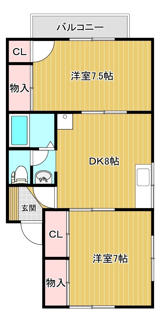 | 間取り | 2DK (洋7、洋7.5、DK8) | |||