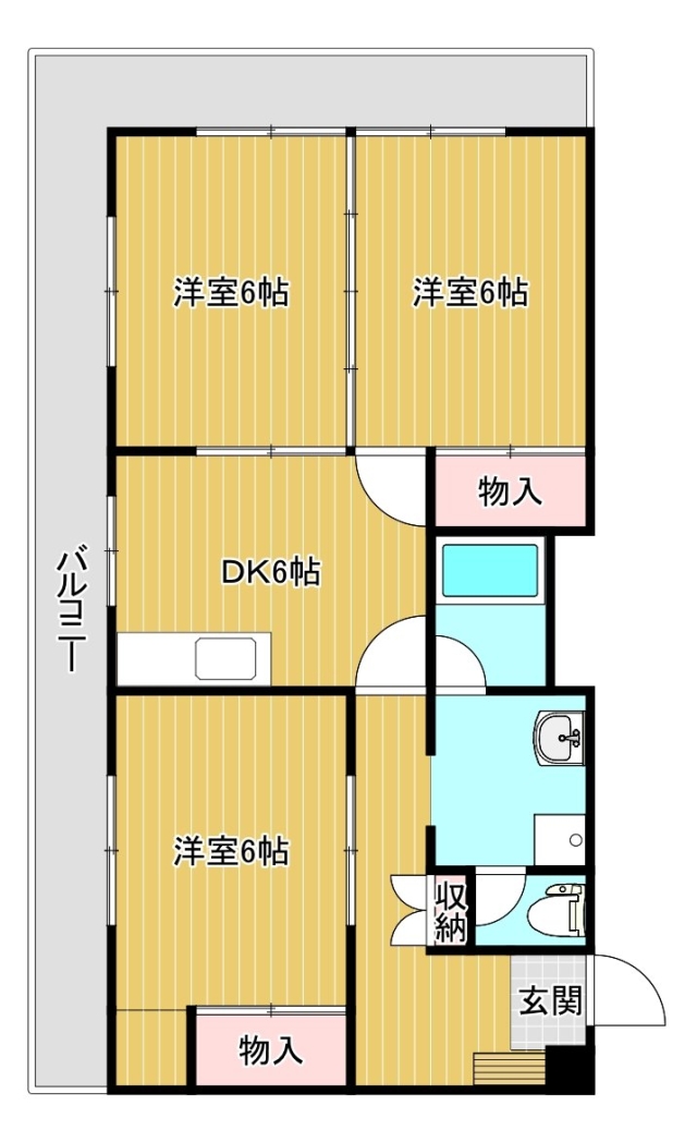 | 間取り | 3DK (洋6、洋6、洋6、DK6) | |||