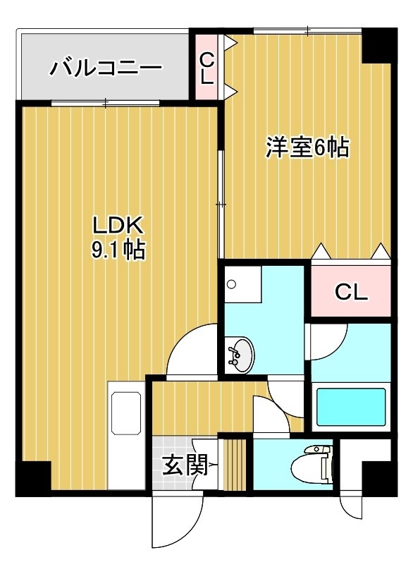 | 間取り | 1LDK (洋6、LDK9.1) | |||