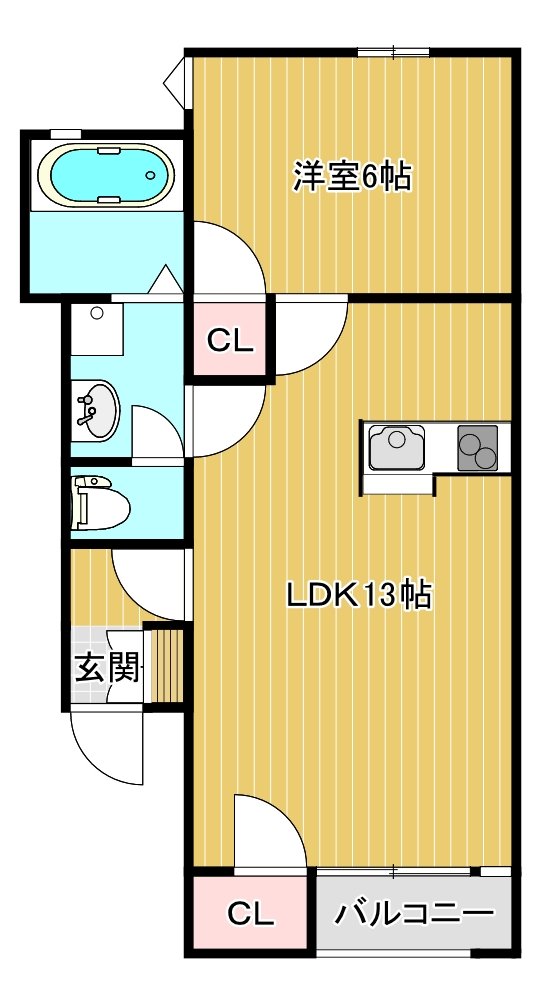 | 間取り | 1LDK (洋6、LDK13) | |||