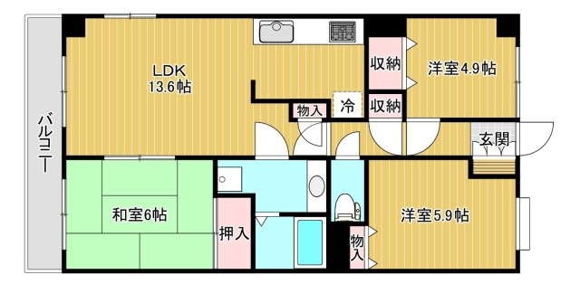 | 間取り | 3LDK (和6 洋5.9 洋4.9 LDK13.6) | |||