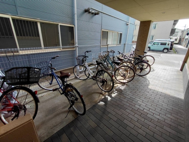 駐輪場や敷地内ゴミ置き場完備♪バストイレ別でトイレは温水洗浄便座です♪シューズボックスや室内物干し機、バルコニーも付いています!