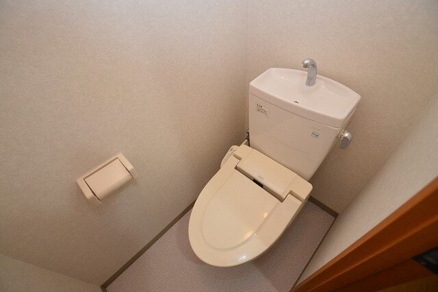 バストイレ別でトイレは温水洗浄便座です♪洗面化粧台やシューズボックス、モニタ付きインターホンも付いています!まずはお気軽にお問い合わせ下さい♪日本海不動産㈱東中通店☆
